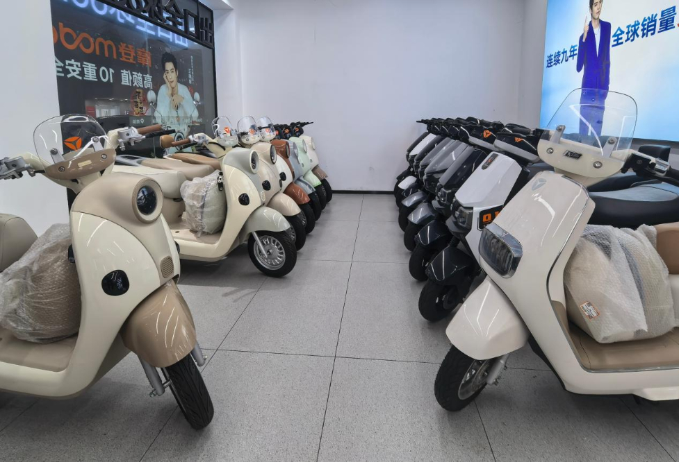 4月9日,福建省福州市平潭縣雅迪電動車旗艦店展出的電摩車型。新華網(wǎng) 王巖 攝