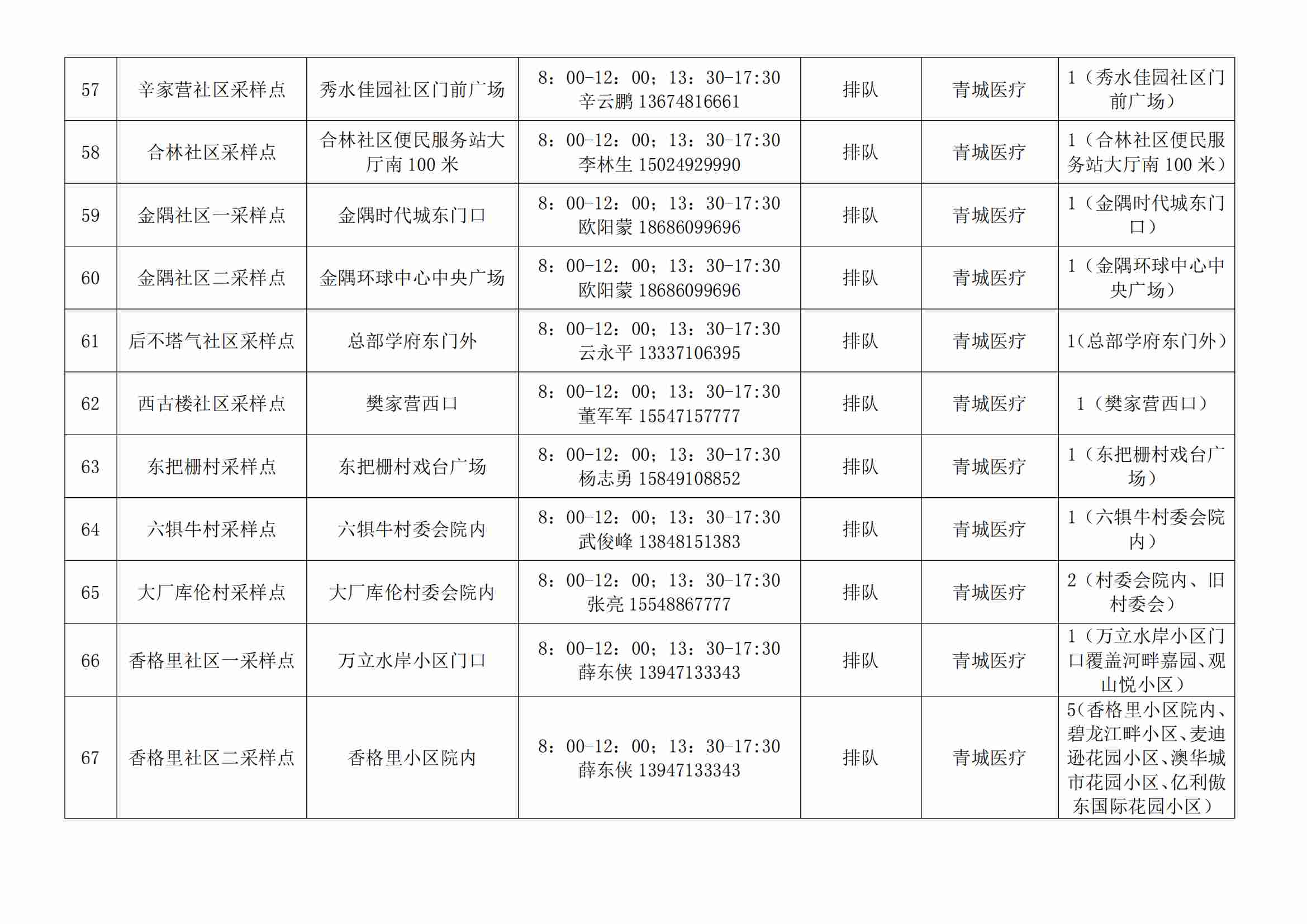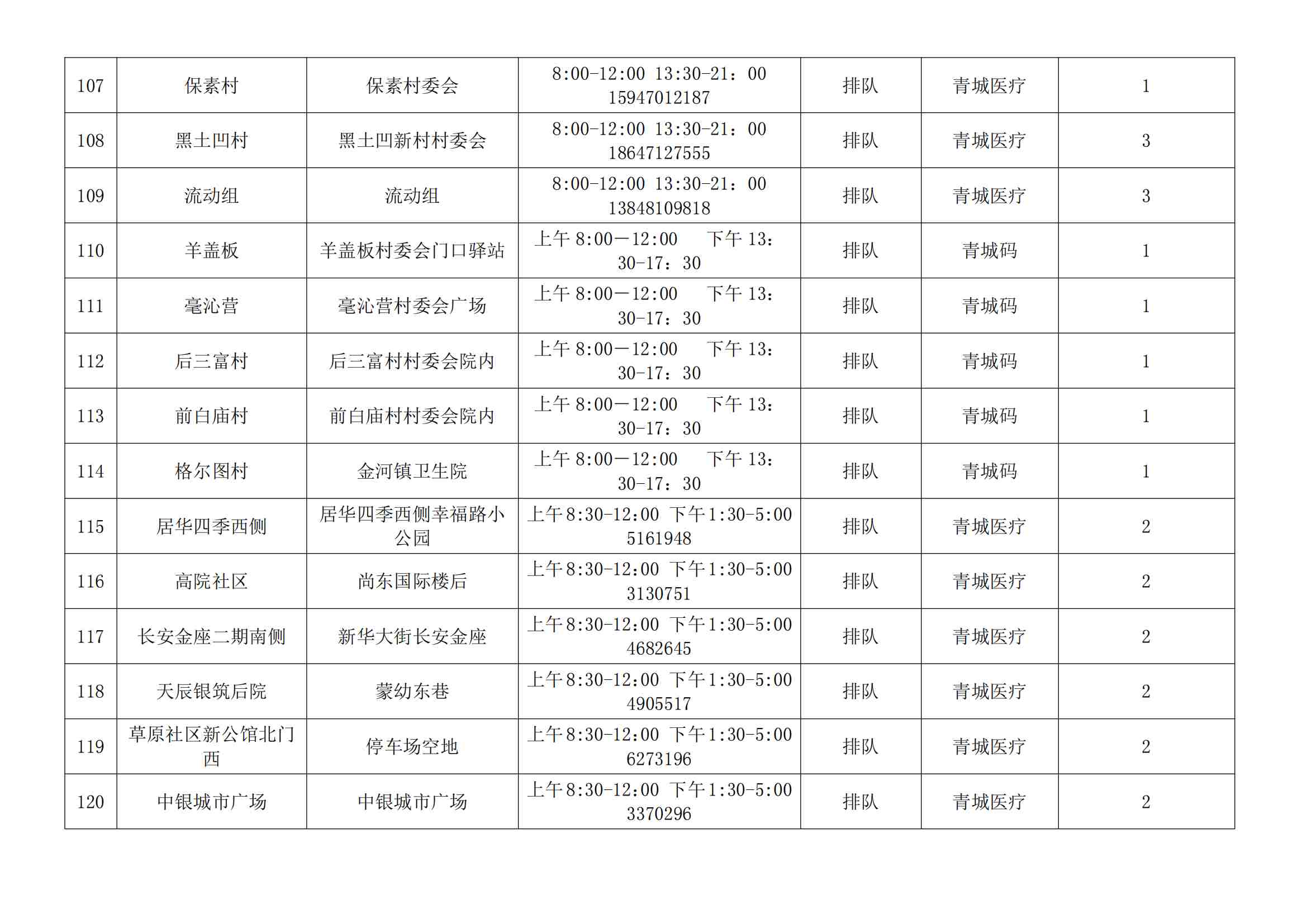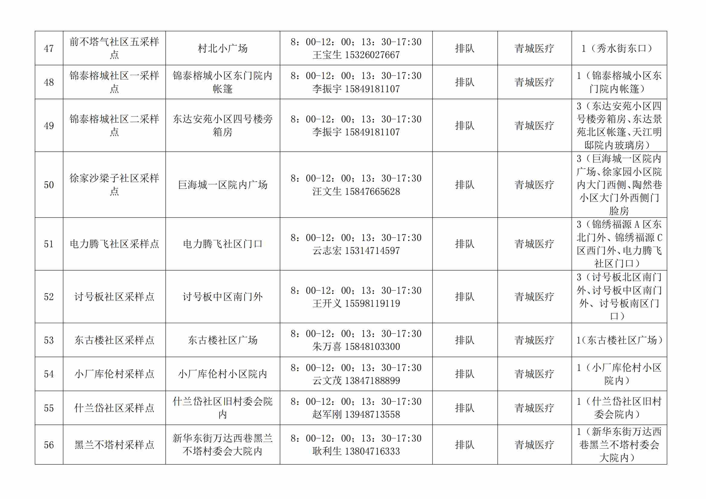 根據(jù)全市核酸檢測政策的調(diào)整,為滿足市民就醫(yī)、出行、工作等核酸檢測需求,賽罕區(qū)開放160個便民核酸采樣點(diǎn)(詳見附表),廣大市民可就近選擇,核酸結(jié)果從青城碼查詢。