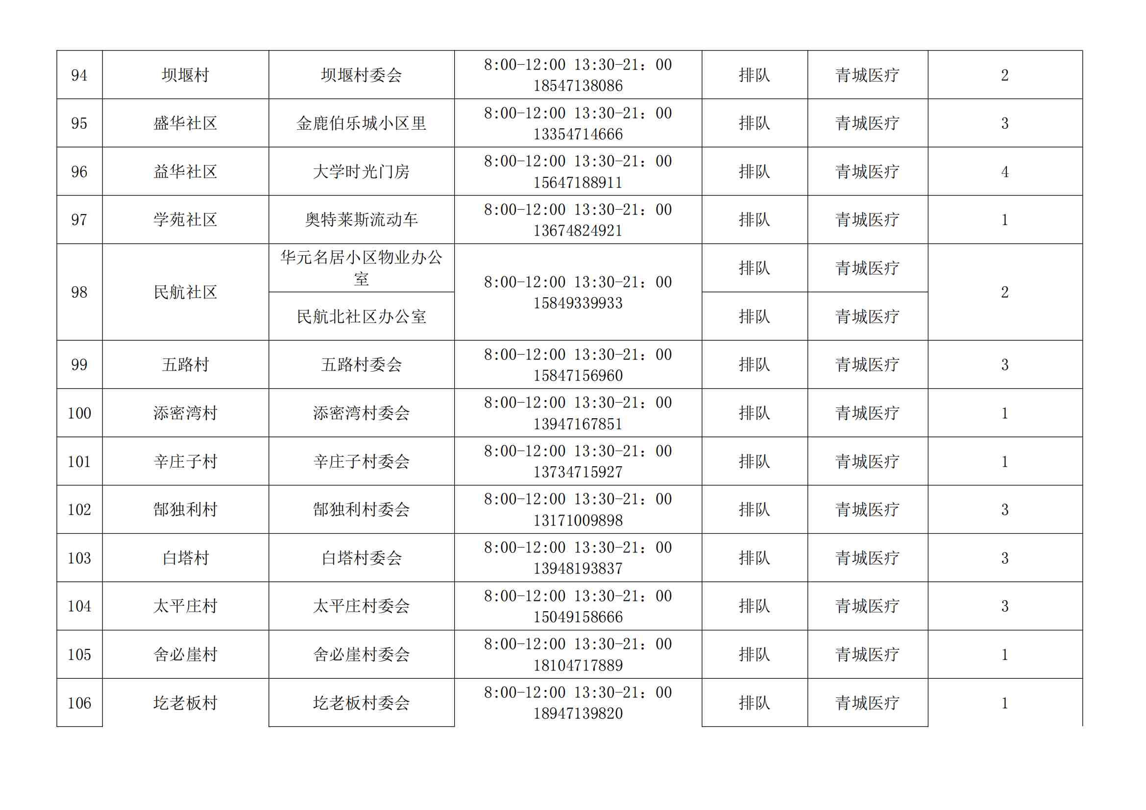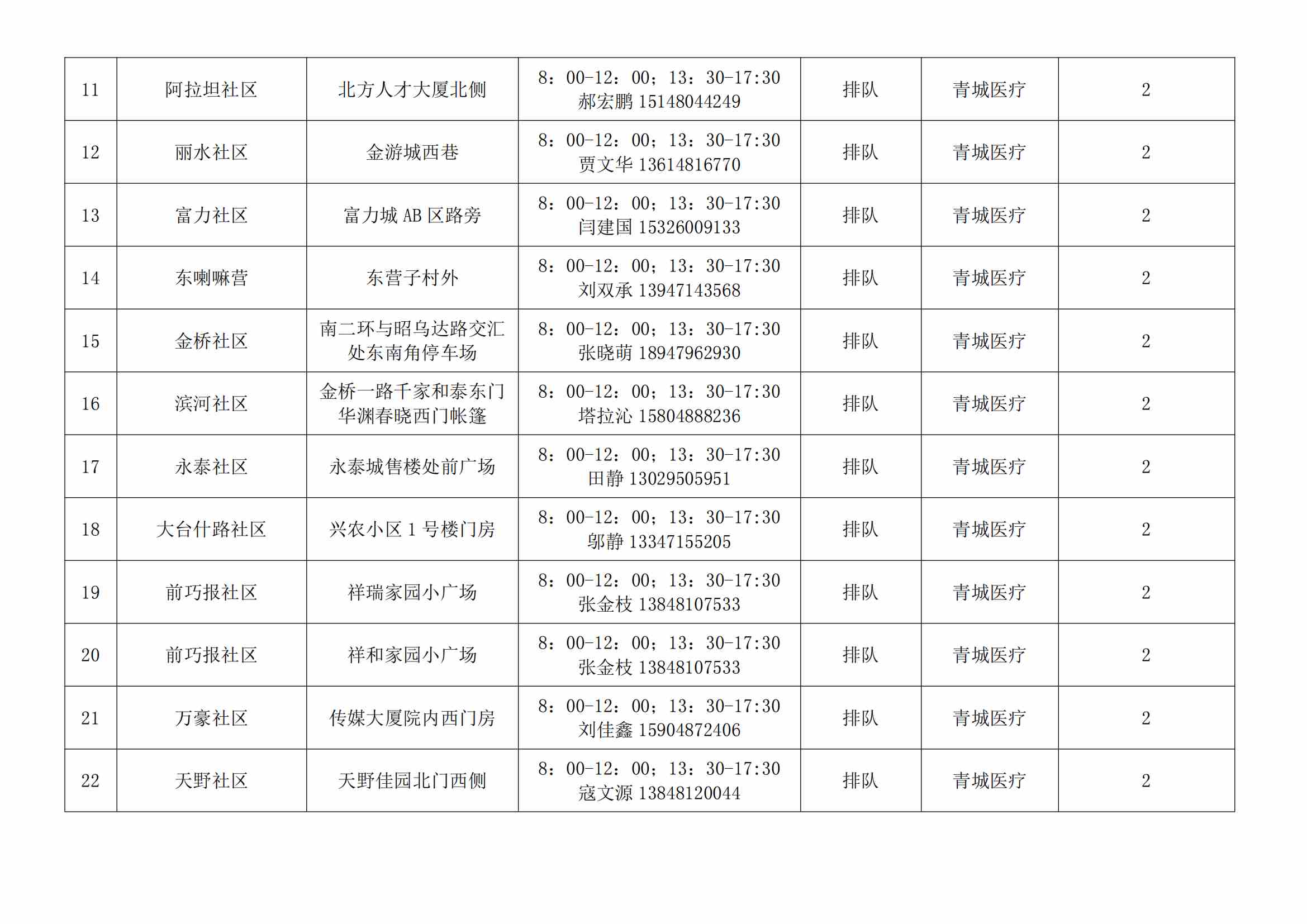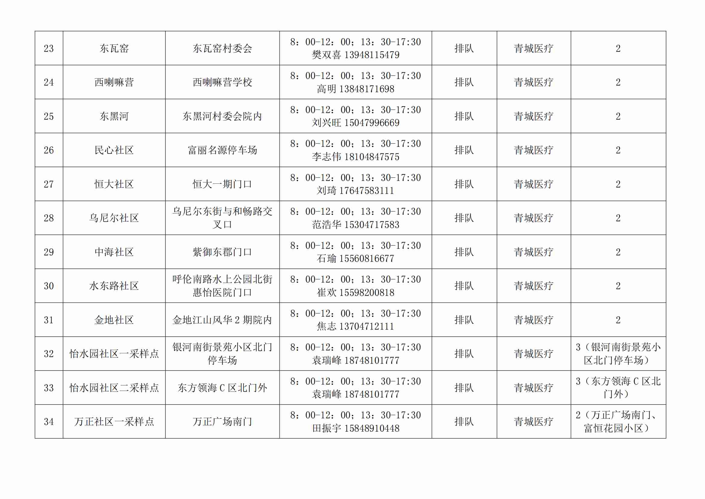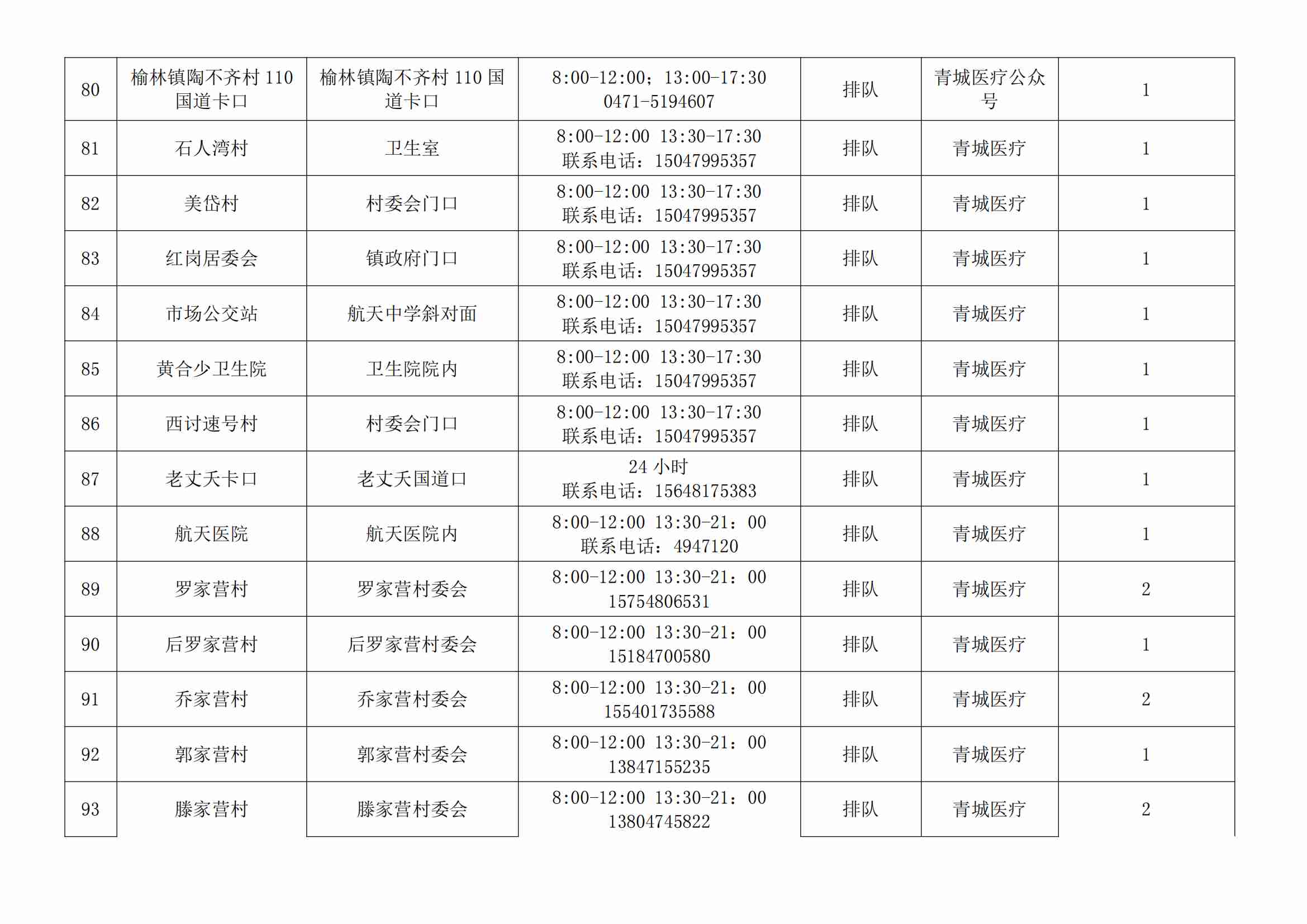 根據(jù)全市核酸檢測政策的調(diào)整,為滿足市民就醫(yī)、出行、工作等核酸檢測需求,賽罕區(qū)開放160個便民核酸采樣點(diǎn)(詳見附表),廣大市民可就近選擇,核酸結(jié)果從青城碼查詢。