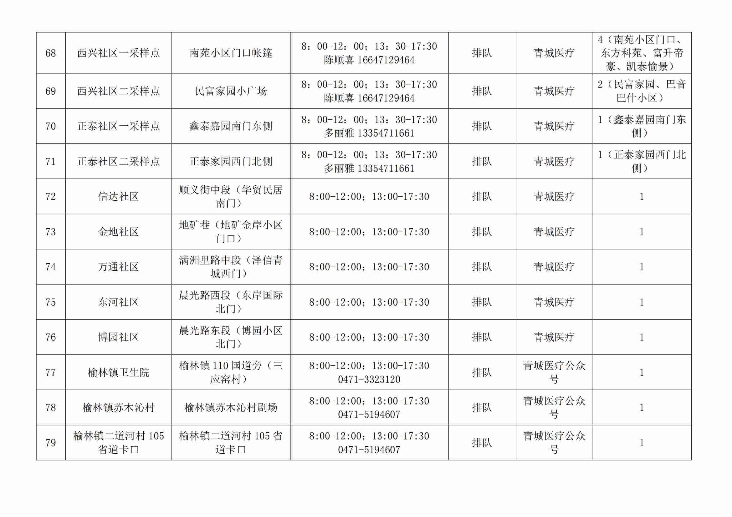 賽罕區(qū)常態(tài)化核酸檢測便民采樣點(diǎn)公示