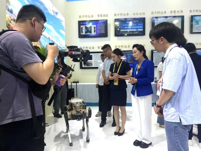 在“數(shù)智政務(wù)”體驗(yàn)區(qū),參展嘉賓深入了解阿拉善盟依托一體化政務(wù)服務(wù)平臺(tái)實(shí)現(xiàn)政務(wù)事項(xiàng)“一網(wǎng)通辦”“掌上辦”的生動(dòng)案例。實(shí)物陳列區(qū),全球首例駱駝瘤胃膠囊、“時(shí)光”雕刻機(jī)、“電子狗”“電子狼”等阿拉善盟應(yīng)用于各領(lǐng)域的諸多高科技產(chǎn)品一一亮相。在互動(dòng)體驗(yàn)區(qū),阿拉善禮物深受歡迎,“數(shù)字身份證”為阿拉善禮物追根溯源。同時(shí),“阿拉善特色產(chǎn)業(yè)”平臺(tái)、“一億棵梭梭”互動(dòng)系統(tǒng)、VR數(shù)游阿拉善等,充分體現(xiàn)了數(shù)字技術(shù)在特色產(chǎn)業(yè)、生態(tài)、文旅、政務(wù)領(lǐng)域的落地成效。