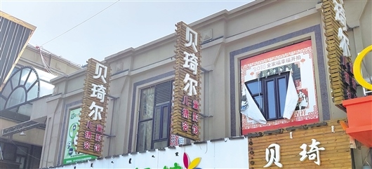 當日,記者來到貝琦爾兒童攝影會館,該店招牌還未摘掉,但店門已經(jīng)上鎖。從外向里看去,屋內(nèi)擺滿了零亂的雜物,店門前則貼著一張出租告示。