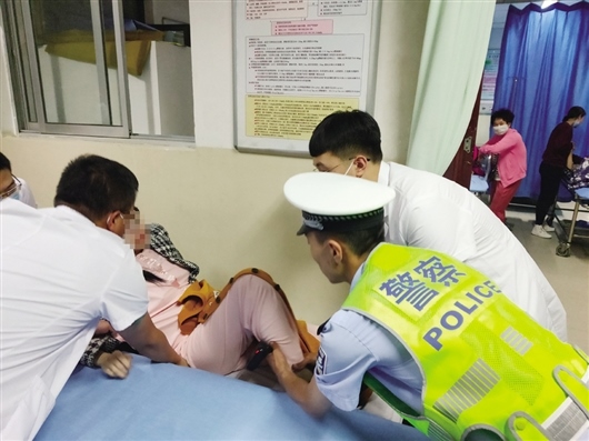 20時(shí)49分,九原區(qū)交警將病人順利送往包頭市中心醫(yī)院。到達(dá)醫(yī)院后,看到患者家屬歲數(shù)大,民警王堒抱起病痛中的姑娘向急診室沖去,平旭則趕忙去聯(lián)系大夫,盡可能為患者就醫(yī)爭(zhēng)取時(shí)間。
