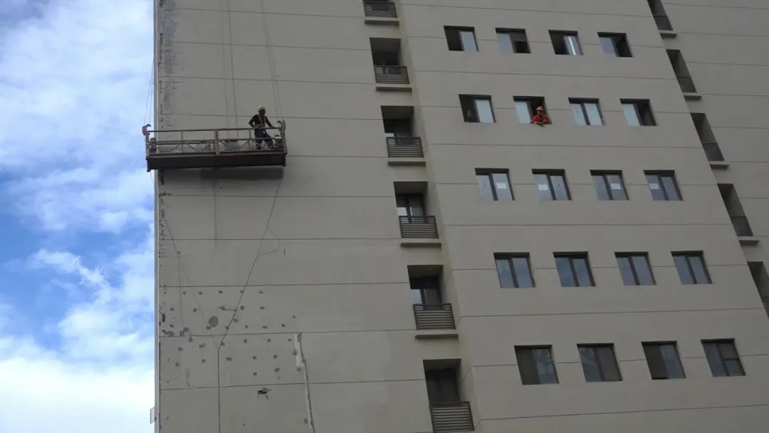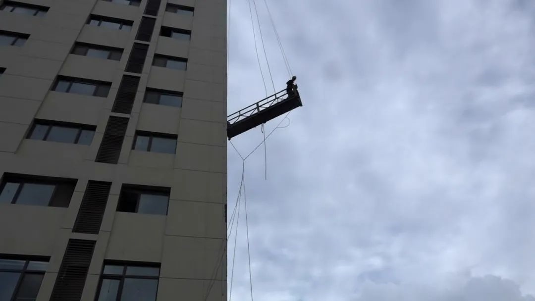 9月1日17時許,包頭市各地出現(xiàn)冰雹、雷雨大風等強對流天氣,冰雹平均直徑5毫米,最大直徑10毫米。在這樣惡劣的天氣條件下,一名粉刷工人被困在包頭市富力城公寓8樓外的吊籃中,情況危急。