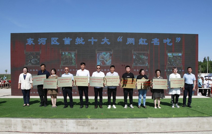 當(dāng)天活動現(xiàn)場,頒發(fā)了東河區(qū)首批“十大網(wǎng)紅特色農(nóng)產(chǎn)品”“十大網(wǎng)紅名吃”“十大東河好禮”,眾多網(wǎng)紅產(chǎn)品何名吃亮相活動現(xiàn)場,受到游客的追捧。內(nèi)蒙古旅游學(xué)會研學(xué)分會實踐教育基地、內(nèi)蒙古自然資源學(xué)會科普基地、內(nèi)蒙古農(nóng)業(yè)大學(xué)實踐教學(xué)基地、包頭市科學(xué)技術(shù)協(xié)會科普示范基地、包頭市少先隊校外實踐教育基地、包頭市中小學(xué)研學(xué)實踐基地在此間揭牌。