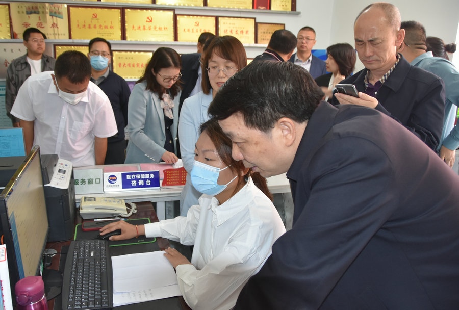 在包頭市青山區(qū)自由路街道基層醫(yī)保服務(wù)站,調(diào)研組觀摩了站里三級(jí)幫辦、四色戶卡分類(lèi)、五種方式厚植服務(wù)等便民欄,查看了咨詢引導(dǎo)區(qū)、休息等待區(qū)、窗口受理區(qū)、便民服務(wù)區(qū)和自助服務(wù)區(qū)各項(xiàng)經(jīng)辦業(yè)務(wù)的開(kāi)展情況等。
