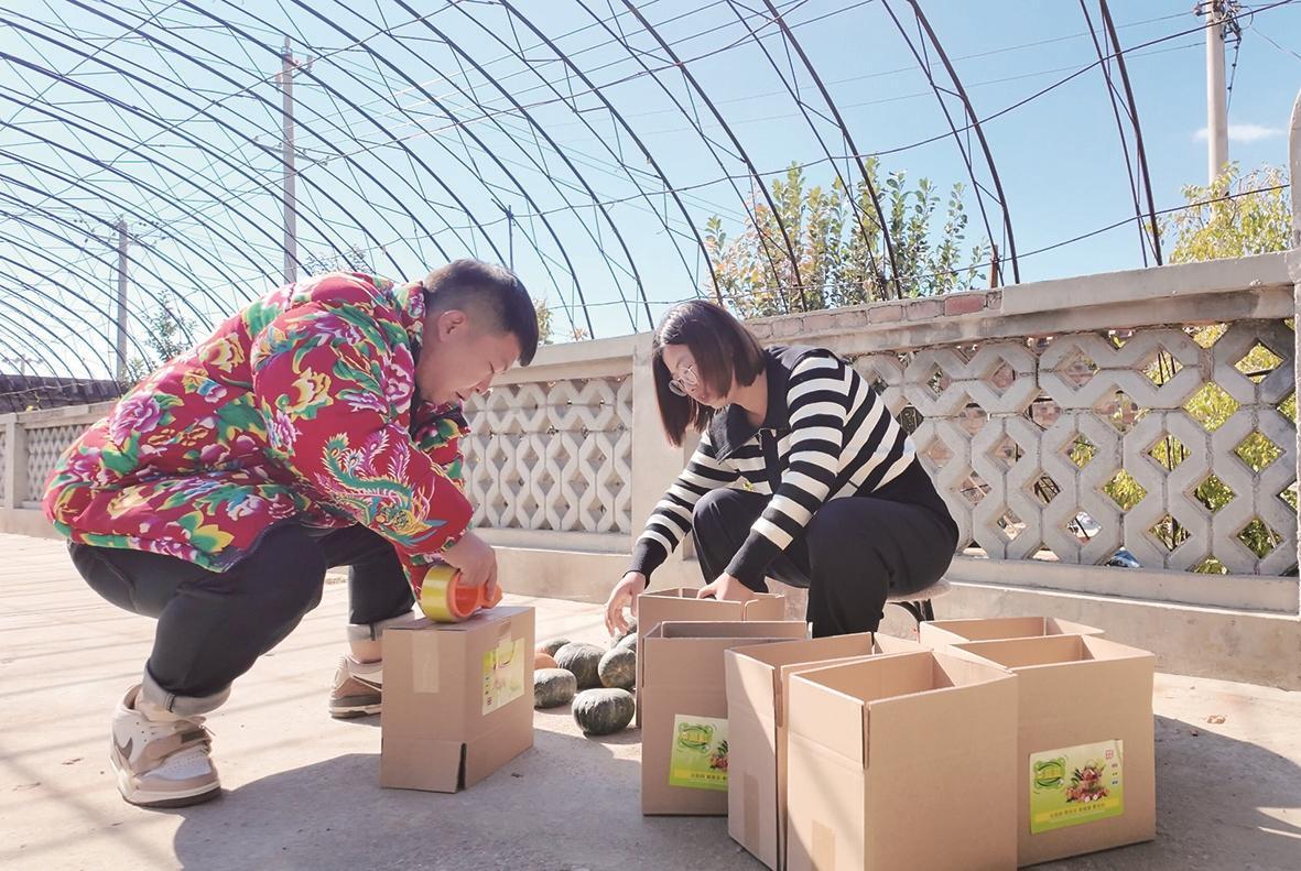 王亞春夫婦將本地特色農產品打包發(fā)貨。