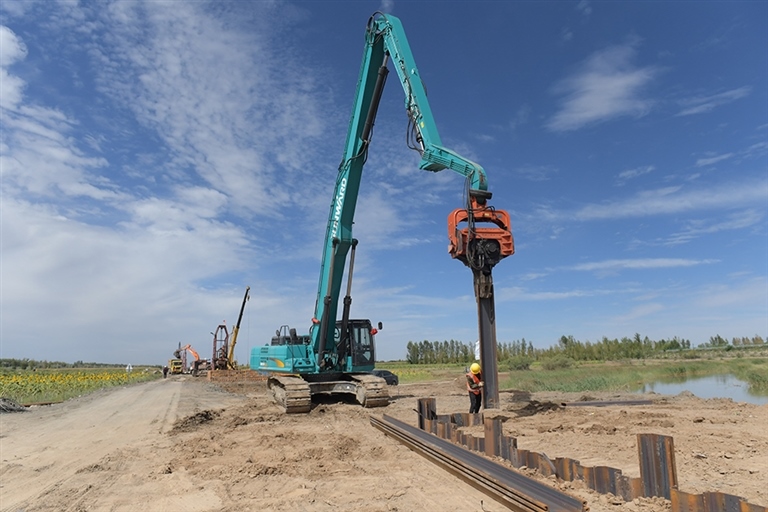 8月26日,記者在中鐵二十五局包銀高鐵工程軟基處理施工現(xiàn)場看到,各類工程車輛往來穿梭,大型機械轟鳴作業(yè),頭戴安全帽的工人們在各自崗位上有序作業(yè)。