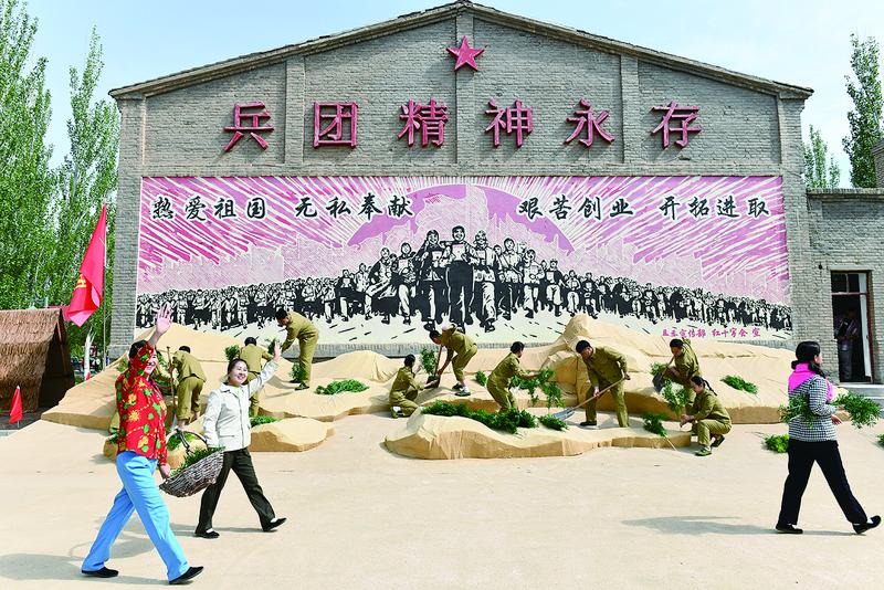 活動(dòng)在歡迎兵團(tuán)戰(zhàn)士的沉浸式演藝場景中開始?!按笥凶鳛椤鞭r(nóng)事體驗(yàn)、“苦中作樂”兵團(tuán)大鍋飯?bào)w驗(yàn)等,讓活動(dòng)參與者們“穿越”到兵團(tuán)歲月。歌手科爾沁夫演唱了本屆藝術(shù)季主題曲《來到了磴口你就不想走》,將現(xiàn)場氣氛推向高潮。