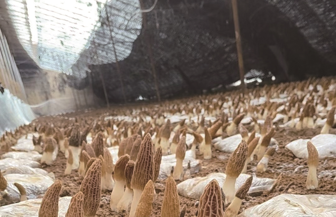 在赤峰市敖漢旗薩力巴鄉(xiāng)設(shè)施農(nóng)業(yè)產(chǎn)業(yè)園,暖意融融的大棚內(nèi)菌香四溢,一朵朵羊肚菌撐著“小傘”破土而出,種植戶和工人們穿梭在菌壟間熟練采摘,處處是豐收的喜人景象。 (王蒙)