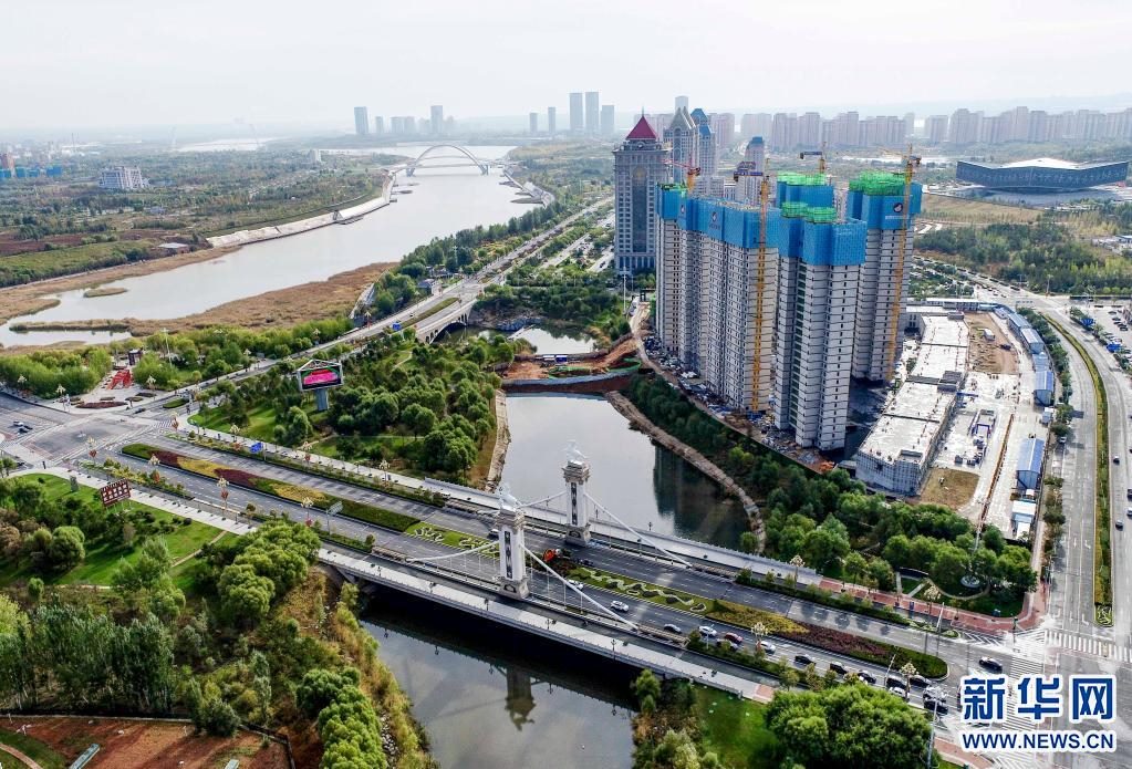 10月14日拍攝的伊金霍洛旗環(huán)城水系一景(無人機(jī)照片) 。