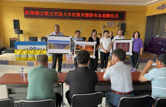 活動(dòng)期間,文聯(lián)主席王春梅說,杭錦旗文聯(lián)始終響應(yīng)黨中央及各級黨委的號召,非常重視鄉(xiāng)村文化振興,做好文化下鄉(xiāng)工作,推進(jìn)農(nóng)牧區(qū)域的文化建設(shè),尤其是遇到今年遇到嚴(yán)重旱情時(shí)期,杭錦旗文聯(lián)組織了攝影藝術(shù)家們拍攝了30幅經(jīng)典作品,捐給希日摩仁嘎查及村民,緩解精神壓力,協(xié)助渡過難關(guān)。
