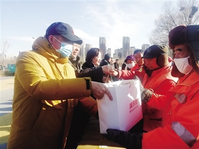 裴永志告訴呼和浩特晚報(bào)記者:“我們夫妻經(jīng)營著一家民營企業(yè),2017年冬季的一天,我出差辦事,當(dāng)天早上7點(diǎn)多就趕到了機(jī)場,天氣非常寒冷。到了機(jī)場,看到有幾名環(huán)衛(wèi)工人正在打掃路邊的衛(wèi)生,其中一名年齡較大的環(huán)衛(wèi)工人摘下手套拾撿路邊的煙頭等垃圾。我當(dāng)時(shí)非常感動(dòng),覺得環(huán)衛(wèi)工人平凡而又偉大,于是,就想著為他們做點(diǎn)什么。出差回來后,我把想法告訴了妻子,沒想到妻子也非常支持,最終,我們決定為環(huán)衛(wèi)工人捐贈(zèng)棉衣。之后便與賽罕區(qū)環(huán)衛(wèi)局的工作人員進(jìn)行對接。當(dāng)年,我們自籌了15萬元,購買了206件棉衣,捐贈(zèng)給了環(huán)衛(wèi)工人。”