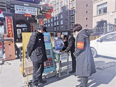 記者跟隨工作人員來到轄區(qū)地新街坊小區(qū),幾名社區(qū)工作人員正在小區(qū)門口負責疫情防控,“您好!請問您去哪棟樓?請下車登記信息。謝謝!”“請居民佩戴好口罩”……針對出入小區(qū)的人員,社區(qū)工作人員都一一仔細核查,宣傳防疫信息?!按汗?jié)長假過后,很多事都堆到今天了,所以格外忙。”阿拉善北路社區(qū)黨總支書記王海瓊說,阿拉善北路社區(qū)很多網格員都放棄了與家人團聚的時間,主動下沉到各個小區(qū)開展疫情防控工作,實行24小時輪崗制,做好外地返呼人員登記和掃碼工作,保證轄區(qū)防控安全。除此之外,還積極參與禁燃煙花爆竹、垃圾分類宣傳等工作,讓政策落到實處。