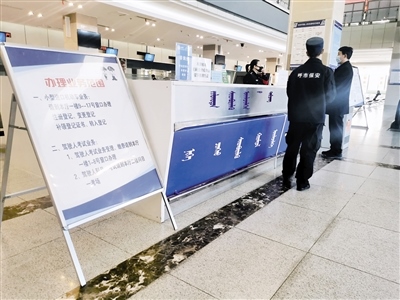 “你好!違章查詢和罰款繳納需要去交管隊,不在這里辦理。如果是本人車輛,也可下載12123 APP進行辦理。”2月18日9時10分,記者走進呼和浩特市交警支隊車輛管理所,在政務服務中心東大廳正對著大門的導辦臺,一位民警正在接受市民業(yè)務咨詢。記者看到,大廳里往日喧囂熱鬧的場景不見了,只有零星幾位市民在辦理業(yè)務。