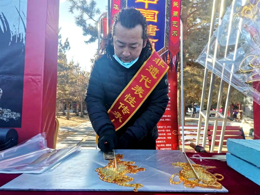 活動(dòng)現(xiàn)場(chǎng),非遺剪紙傳承人董存娥專(zhuān)門(mén)剪出“奧運(yùn)題材剪紙”和“北京冬奧會(huì)開(kāi)幕式中國(guó)代表團(tuán)旗手、呼和浩特19歲姑娘趙丹”手舉國(guó)旗的剪紙作品。呼和浩特的非遺項(xiàng)目布藝、剪紙、蒙古族皮藝皮畫(huà)皮雕、糖畫(huà)、蛋雕、蒙鑲工藝、二人臺(tái)、爬山調(diào)等近20項(xiàng)進(jìn)行了現(xiàn)場(chǎng)展示展覽傳習(xí)互動(dòng),受到群眾歡迎。