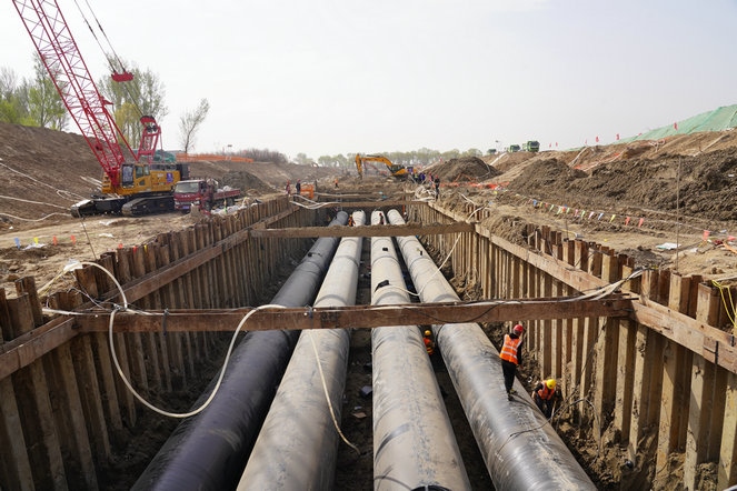 “項目總投資70.45億元,總的輸送長度是104.9公里,包括建設長輸管網(wǎng)68.4公里、市區(qū)配套管網(wǎng)36.5公里、2座中繼泵站和1座隔壓換熱站。全部達產(chǎn)后將提供9100萬平方米以上供熱能力,也就是將滿足呼和浩特一半供熱需求”。呼和浩特市長輸供熱有限公司副總經(jīng)理兼技術總監(jiān)于力說。