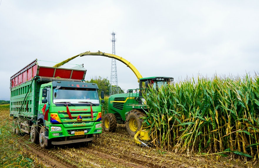 青貯玉米是把玉米植株全部收割下來經(jīng)過切碎、加工后用發(fā)酵的方法制作成青貯飼料的玉米,用來飼喂牛、羊等牲畜。這幾天,土默特左旗青貯玉米陸續(xù)進入豐收季,收割工作全面啟動。