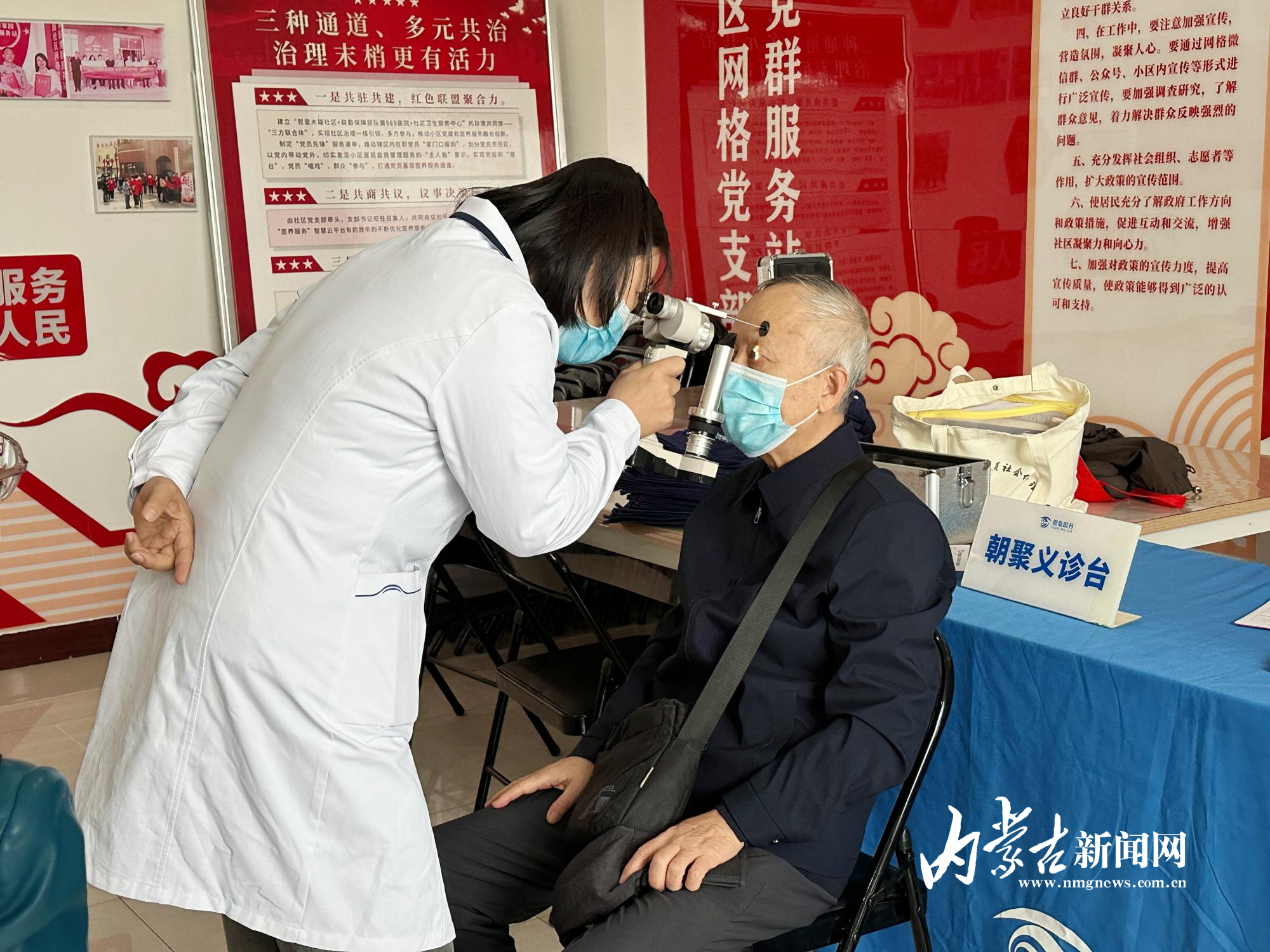 “醫(yī)生,我最近看報(bào)紙總覺得字發(fā)虛,是不是白內(nèi)障又加重了?”“您別著急,先坐好,我?guī)湍屑?xì)查查眼底?!?0月10日上午,呼和浩特市新城區(qū)海拉爾路街道哲里木路社區(qū)戎輝小區(qū)活動室內(nèi)暖意融融,醫(yī)護(hù)人員正耐心地為居民做眼部檢查。當(dāng)日,哲理木路社區(qū)聯(lián)合內(nèi)蒙古朝聚眼科醫(yī)院在這里開展眼科義診活動。