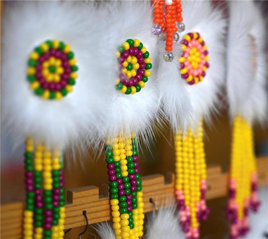 “太陽(yáng)花”是鄂溫克族傳統(tǒng)手工藝品,圓心象征著太陽(yáng),四周毛針象征著陽(yáng)光,寓意著溫暖、吉祥。如今,“太陽(yáng)花”已經(jīng)成為鄂溫克族自治旗暢銷的文創(chuàng)產(chǎn)品,帶動(dòng)當(dāng)?shù)責(zé)釔?ài)傳統(tǒng)手工藝品制作的人們共同走上致富路。