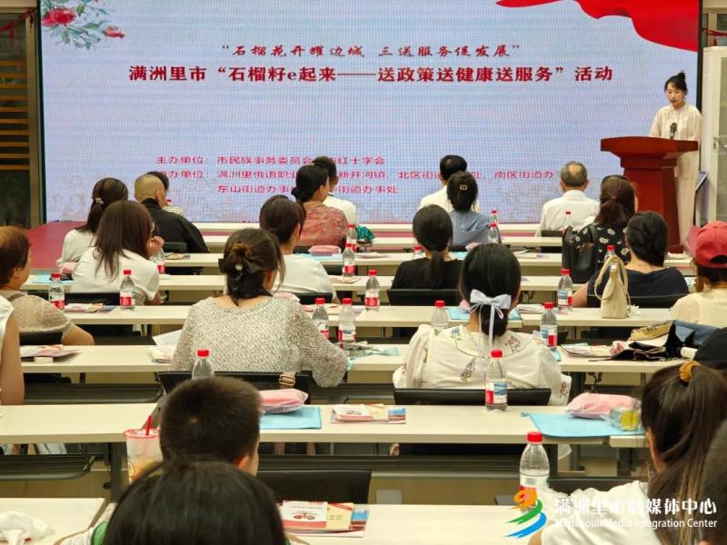 日前,“石榴花開耀邊城 三送服務(wù)促發(fā)展”——滿洲里市“石榴籽e起來(lái)”送健康活動(dòng)在滿洲里市怡園社區(qū)舉行。全市各街道辦事處、新開河鎮(zhèn)的100余名各族群眾參加活動(dòng)。