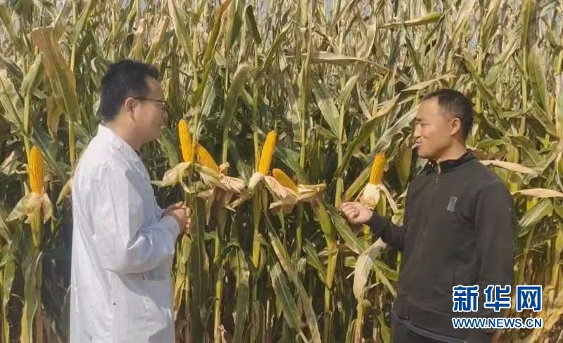 這是張國強(左)在與種糧大戶王興海交流。(受訪單位供圖)
