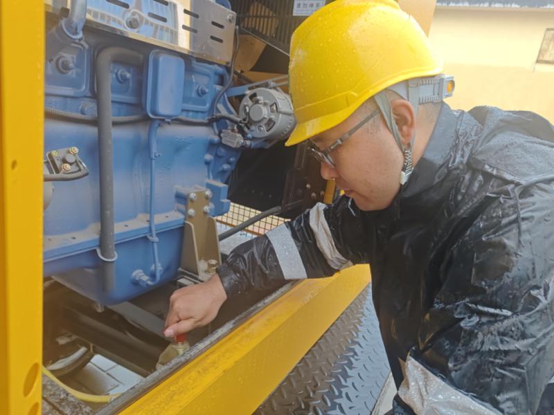 新城變電工區(qū)創(chuàng)業(yè)66千伏變電站運(yùn)維人員啟動抽水車直流電源排出積水。(攝影:王磊)