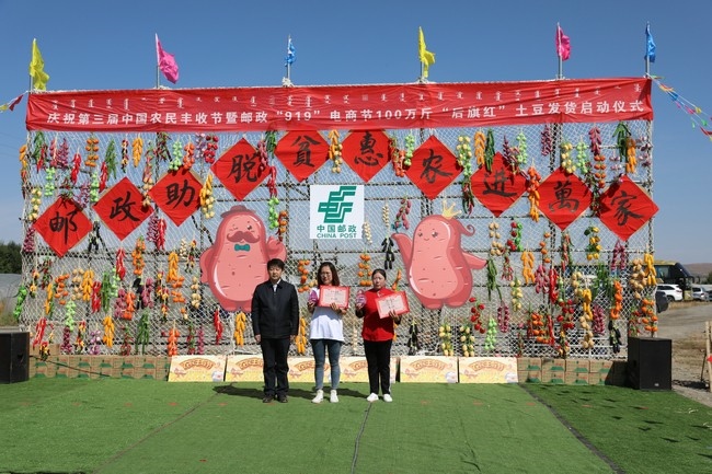 據(jù)介紹,“919電商節(jié)”,是中國郵政集團公司利用線上電商平臺,開展農(nóng)產(chǎn)品進城、助力農(nóng)民脫貧致富的惠民活動。今年活動期間,擬銷售“后旗紅”土豆100萬斤,可以讓一家扶貧龍頭企業(yè)、一家合作社、500多戶農(nóng)牧戶受益。其中北方馬鈴薯批發(fā)市場帶動200戶貧困戶參與集體分紅,戶均增收1000元;高價收購15戶貧困戶、20戶農(nóng)戶馬鈴薯20萬斤,戶均增收1600元;直接間接帶動務(wù)工人員265人,人均增收420元;活動期間將為28戶農(nóng)戶提供免費耕作服務(wù),免費耕作土地總畝數(shù)940畝,幫助28戶農(nóng)戶節(jié)省開支42300元,戶均節(jié)省1511元。