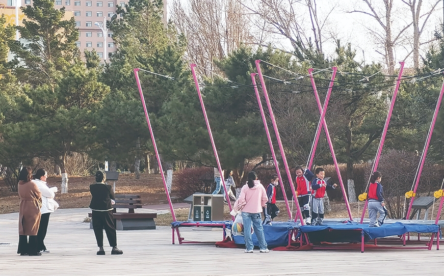 走進(jìn)烏蘭察布植物園,映入眼簾的是長青的松柏,遠(yuǎn)處湖水已經(jīng)融化,倒映著正在漫步的市民的身影。家長帶著放學(xué)的孩子們在植物園里散步玩耍,呼吸著新鮮的空氣。結(jié)伴而行的年輕人一起討論期待著花開樹綠后的場景。