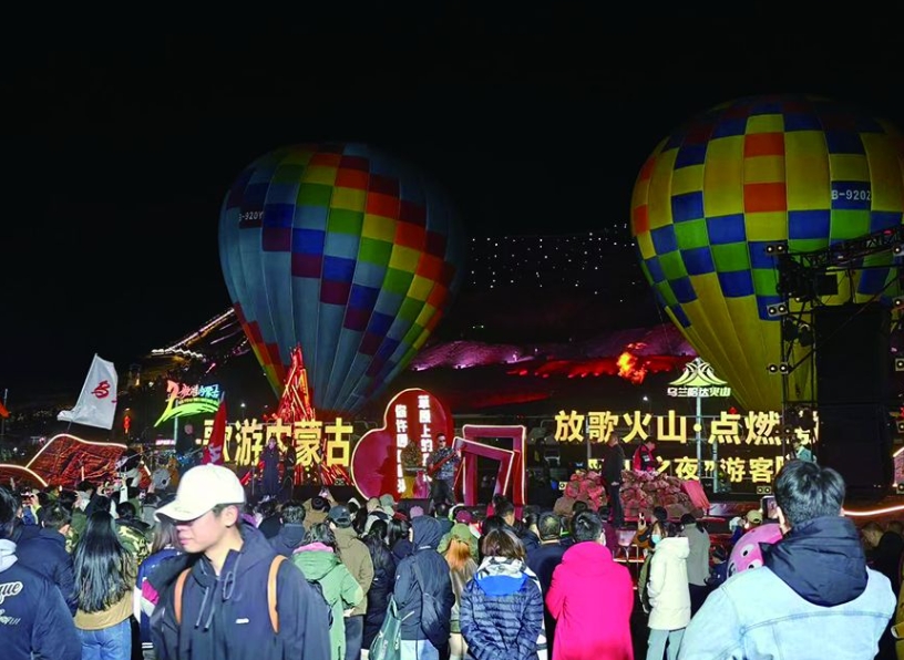 游客在火山下嗨歌(烏蘭哈達火山景區(qū)供圖)