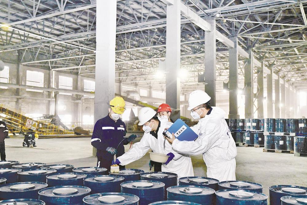 近日,烏海海關(guān)關(guān)員對(duì)內(nèi)蒙古宜化化工有限公司出口的化工產(chǎn)品進(jìn)行檢查,不久后,這些產(chǎn)品將通過陸海聯(lián)運(yùn)銷往東南亞市場。(王超 攝)