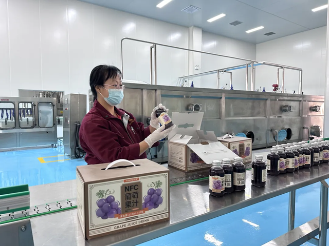 “我們果汁的亮點是百分之百NFC(非濃縮還原)壓榨技術(shù),整個生產(chǎn)線滿負荷運行后,年產(chǎn)可達5000噸,預計產(chǎn)值1.8億元。我們將繼續(xù)拓展葡萄產(chǎn)業(yè)鏈,提高葡萄產(chǎn)品附加值,把葡萄產(chǎn)業(yè)發(fā)展成為富民產(chǎn)業(yè)?!睘鹾J性骑w農(nóng)業(yè)種養(yǎng)科技有限公司行政副總經(jīng)理魏通說。
