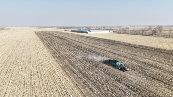 3月8日,農(nóng)民駕駛農(nóng)機在內(nèi)蒙古興安盟扎賚特旗音德爾鎮(zhèn)巨寶村一處農(nóng)田中拋撒有機肥(無人機照片)。驚蟄節(jié)氣后,內(nèi)蒙古興安盟扎賚特旗各項備耕工作有序推進。扎賚特旗是我國重要的產(chǎn)糧大縣,2024年糧食總產(chǎn)量達49.5億斤。(新華社記者 貝赫)