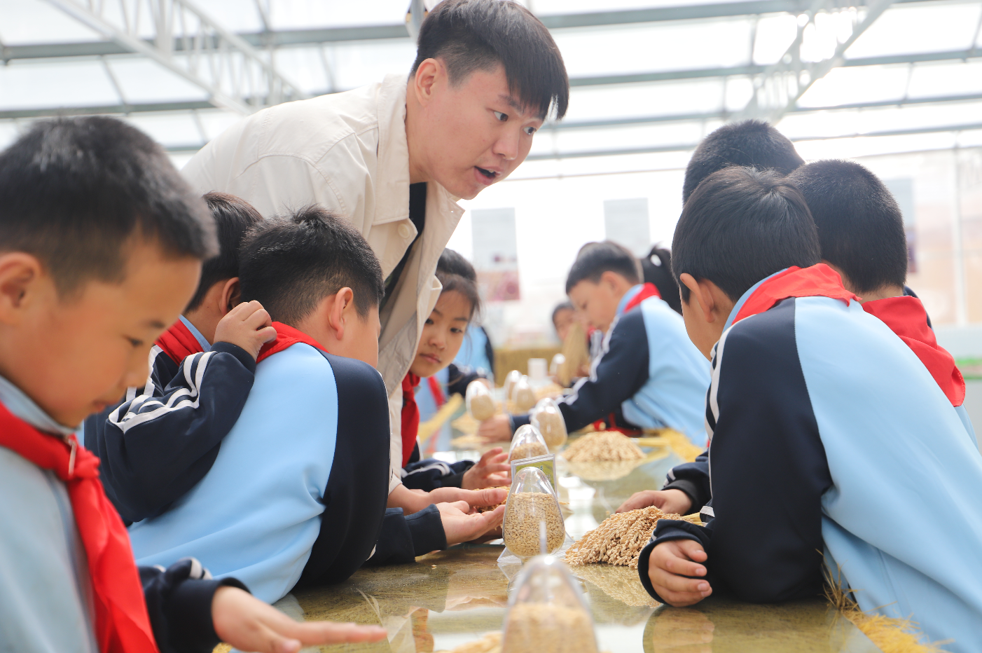 “同學(xué)們,大家快看,這是水稻的幼苗。再過幾個月,它們就會長成金燦燦的稻穗啦!”科技小院的講解員老師一邊指著嫩綠的秧苗,一邊繪聲繪色地向孩子們介紹水稻的生長過程。