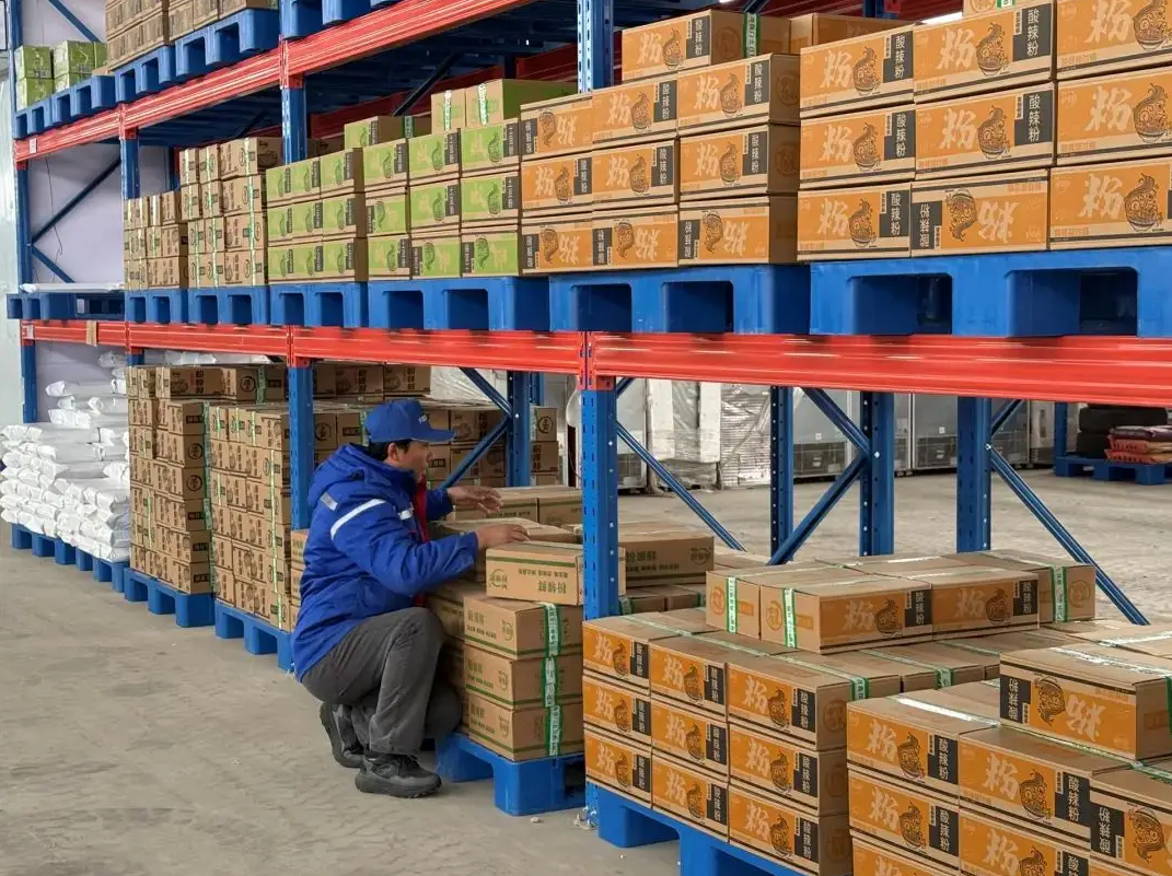 這座占地3000平方米的現(xiàn)代化物流樞紐功能齊全:保鮮冷藏區(qū)保障牛羊肉和乳制品的新鮮口感;常溫倉儲(chǔ)區(qū)整齊碼放著大米、沙果干等特產(chǎn);打包區(qū)里工人配合膜包機(jī)完成高效分裝。更重要的是,政府持續(xù)給予租金補(bǔ)貼,大大減輕了企業(yè)的倉儲(chǔ)負(fù)擔(dān)。