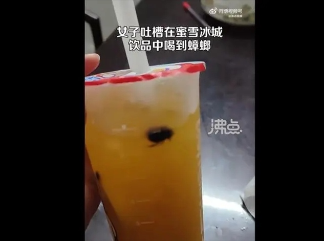 ·廣東一女子稱(chēng)在蜜雪冰城中喝到大蟑螂,店家:正在核查,后續(xù)會(huì)給顧客交代。