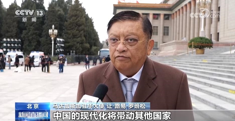 馬達加斯加駐華大使 讓·路易·羅班松:中國的現(xiàn)代化發(fā)展很好,中國的現(xiàn)代化將帶動其他國家,尤其是發(fā)展中國家的現(xiàn)代化。中國有關世界和平的立場主張也會更加受到全世界的關注。