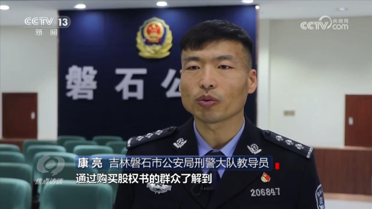 吉林磐石市公安局刑警大隊(duì)教導(dǎo)員康亮介紹,通過購買股權(quán)書的群眾了解到,這是一個(gè)投資29.9元就能獲得110萬元回報(bào)的項(xiàng)目。