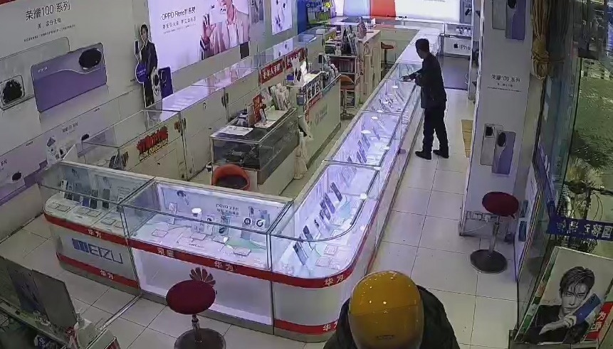 二手手機(jī)店監(jiān)控畫面。本文圖片均為 上海寶山警方 提供