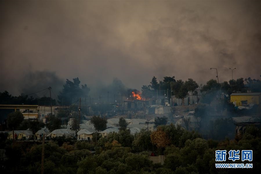 9月9日,希臘萊斯沃斯島的莫里亞難民營發(fā)生火災(zāi)。新華社發(fā)(帕納吉奧提斯·帕拉斯卡斯攝)
