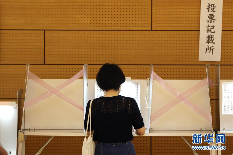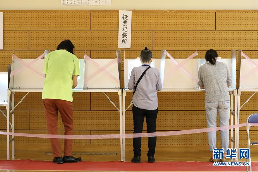 7月5日,選民在日本東京的一個(gè)投票點(diǎn)投票。日本東京都知事選舉于5日舉行投票。新華社記者杜瀟逸攝