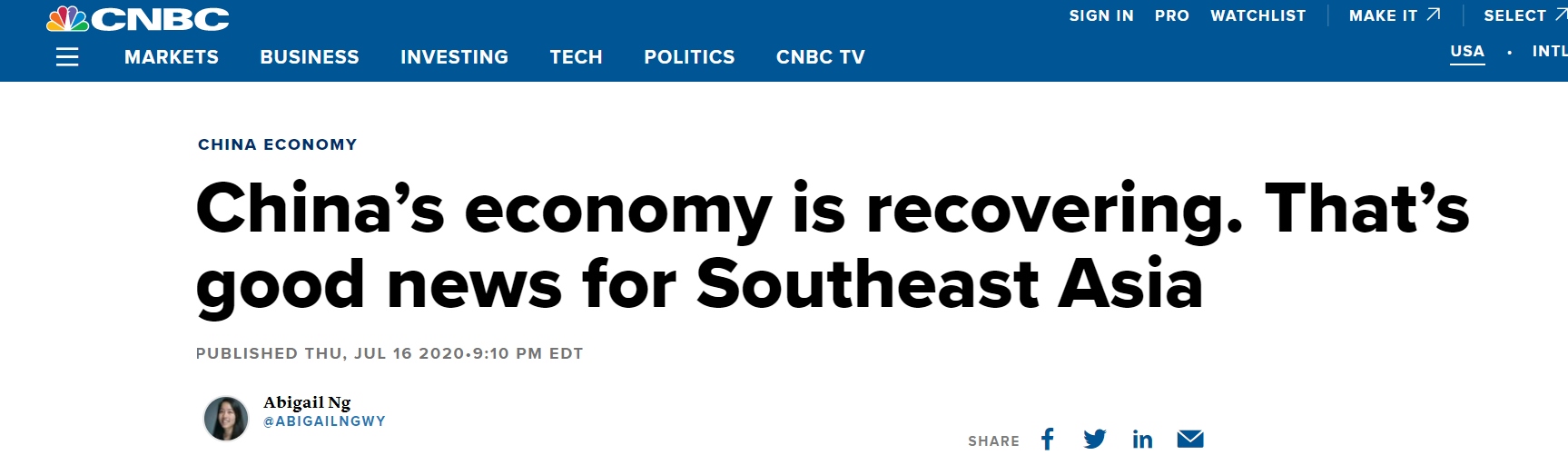 美國消費者新聞與商業(yè)頻道(CNBC)17日發(fā)表文章,題為《中國經(jīng)濟正在復蘇,這對東南亞是個好消息》。文中指出,作為東盟出口商品最多的國家,中國經(jīng)濟穩(wěn)步增長成為東南亞國家“關(guān)鍵資產(chǎn)”?!氨M管還有許多挑戰(zhàn),這一增長重新點燃了中國經(jīng)濟可以幫助其他國家復蘇的希望”,華僑銀行(OCBC Bank)經(jīng)濟學家維蘭托(Wellian Wiranto)16日表示。