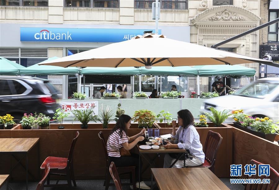 7月23日,在美國紐約,人們在戶外就餐區(qū)用餐。美國約翰斯·霍普金斯大學(xué)23日發(fā)布的新冠疫情最新統(tǒng)計數(shù)據(jù)顯示,美國累計確診病例超過400萬例。數(shù)據(jù)顯示,截至美國東部時間23日15時34分(北京時間24日3時34分),美國累計確診病例4007859例,累計死亡病例143846例。新華社記者王迎攝