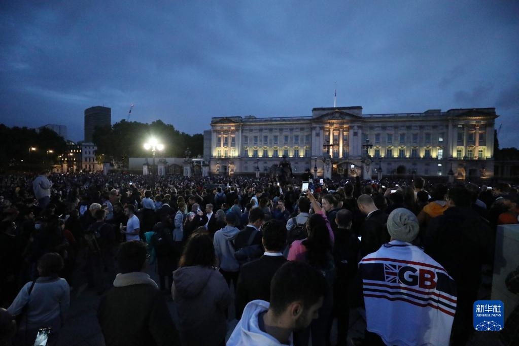 9月8日,民眾聚集在英國倫敦的白金漢宮外。新華社記者李穎攝