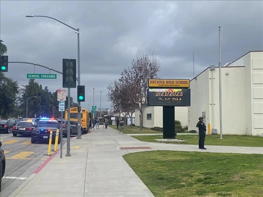 新華社洛杉磯2月24日電(記者高山)當(dāng)?shù)貢r(shí)間2月21日下午3點(diǎn)多,美國(guó)加利福尼亞州洛杉磯縣阿卡迪亞高中即將放學(xué),突然間大批警車呼嘯而至,封鎖了各個(gè)入口,荷槍實(shí)彈的警察在直升機(jī)掩護(hù)下沖入校園。教室內(nèi),師生們緊張地躲到桌下。校園外,家長(zhǎng)們焦急地等待消息。
