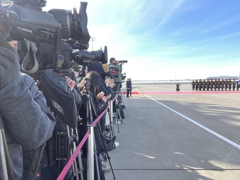 抵達(dá)時,俄方在機場舉行隆重迎賓儀式。