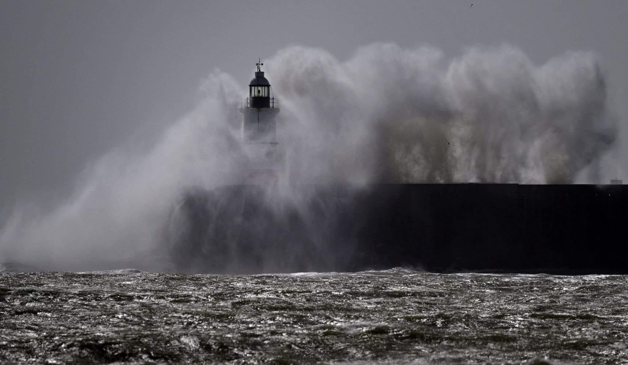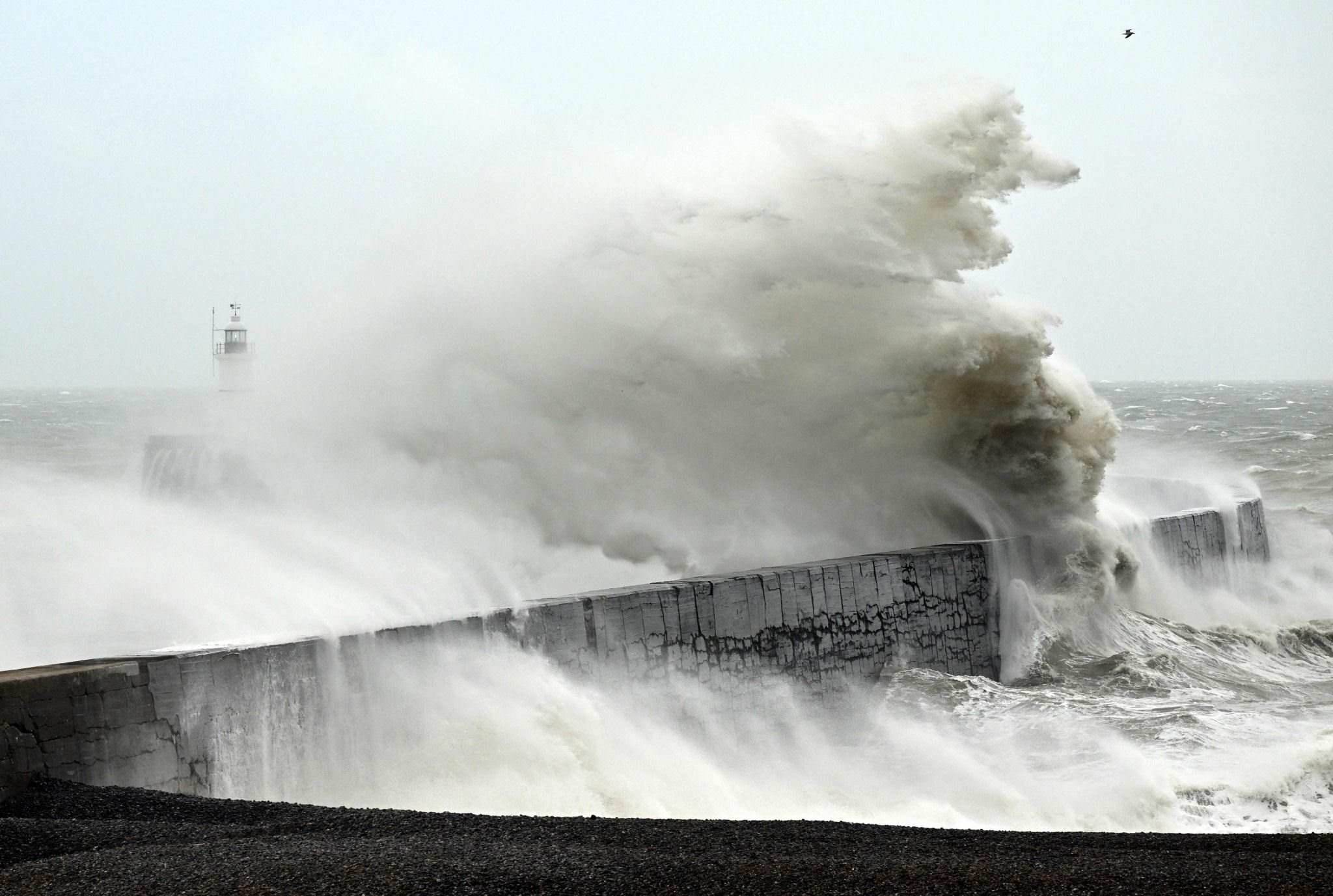 英國紐黑文:風(fēng)暴來襲巨浪翻涌