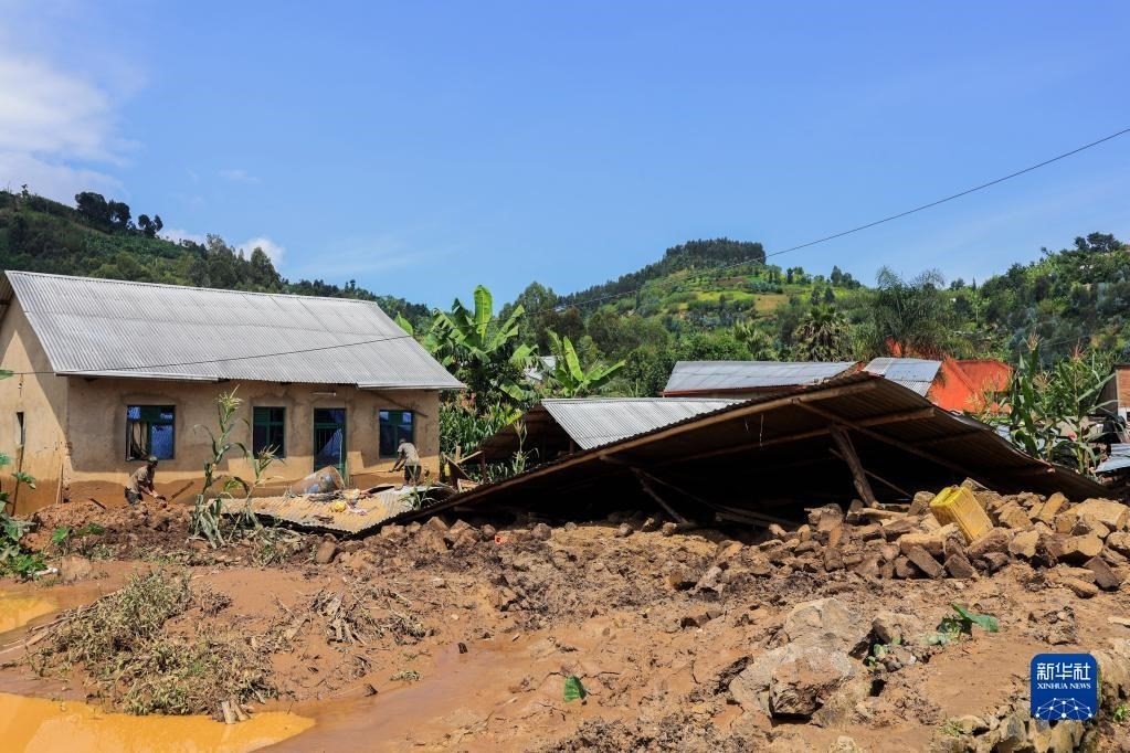 5月4日,人們在盧旺達(dá)西方省清理在強(qiáng)降雨和洪水中受損的房屋。