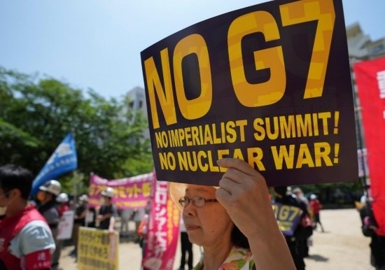 5月21日,民眾聚集在日本廣島袋町公園,抗議七國(guó)集團(tuán)峰會(huì)。新華社記者張笑宇攝