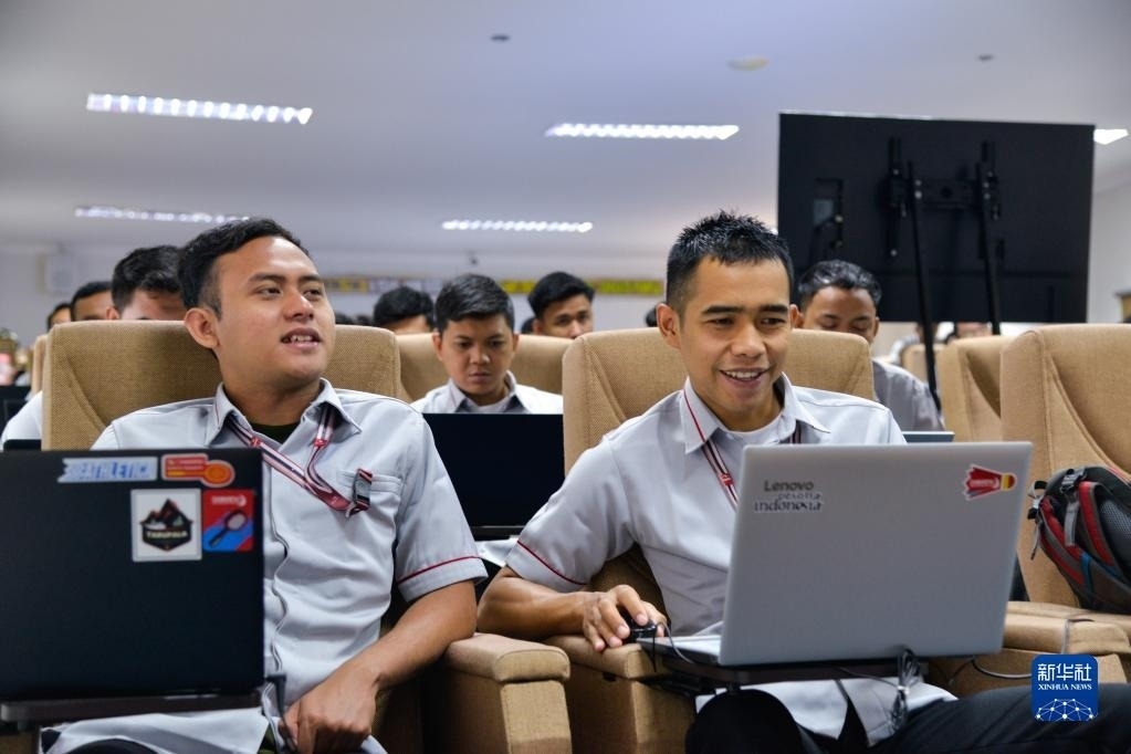 6月7日,在位于印度尼西亞茉莉芬市的印尼鐵路理工學(xué)院,學(xué)員在接受雅萬高鐵運行控制中心調(diào)度人員培訓(xùn)。